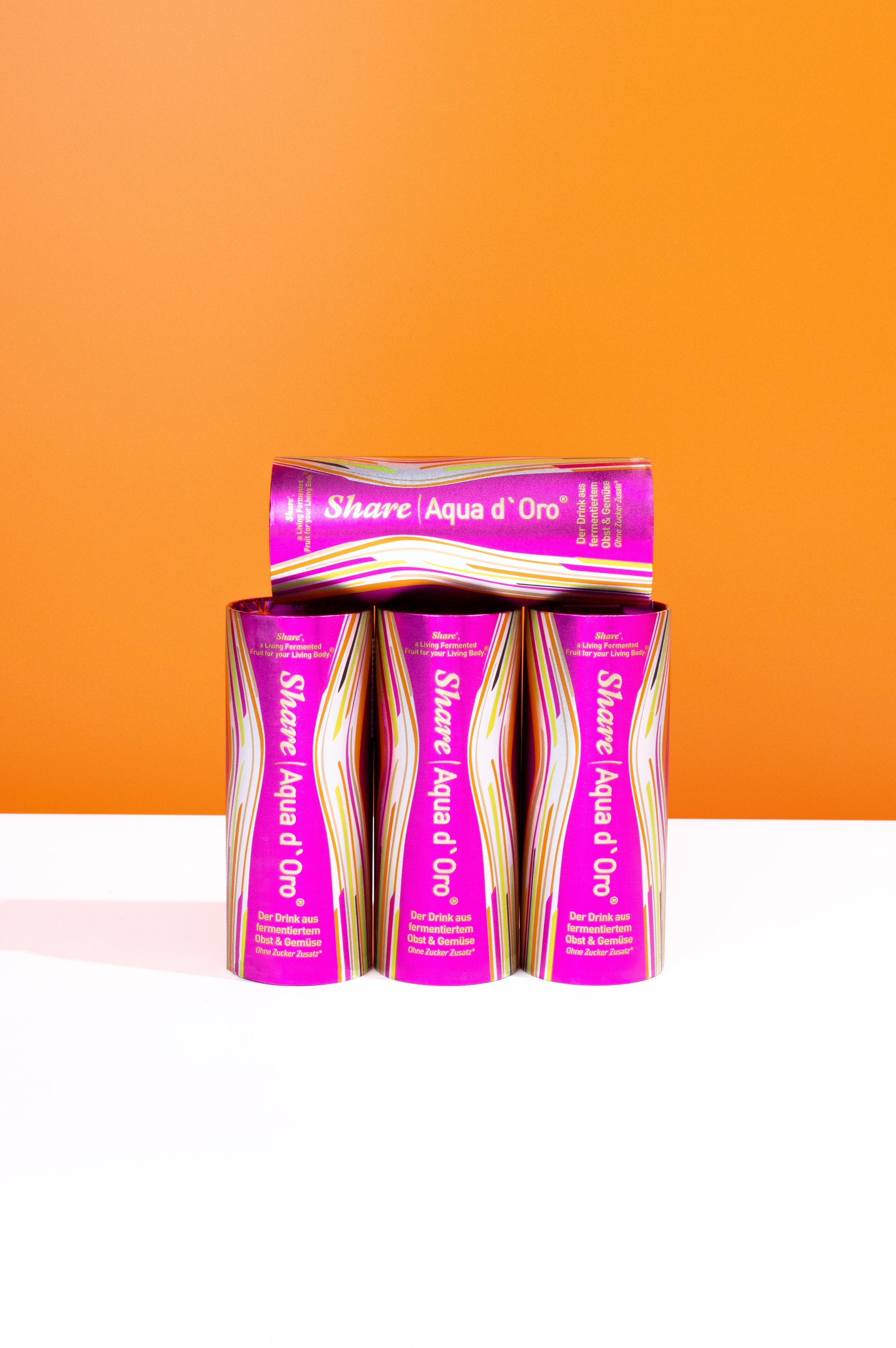"ShareAqua d'Oro® - 4 x 240 ml succo fermentato di frutta e verdura The result is an incredibly fruity and noticeably refreshing drink."